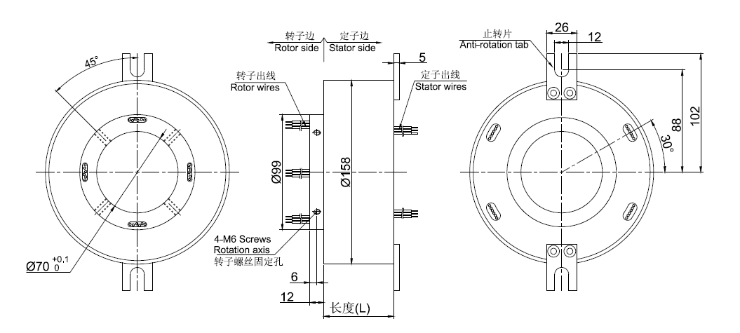 GT70158系列 標(biāo)準(zhǔn)整體式精密導(dǎo)電滑環(huán)