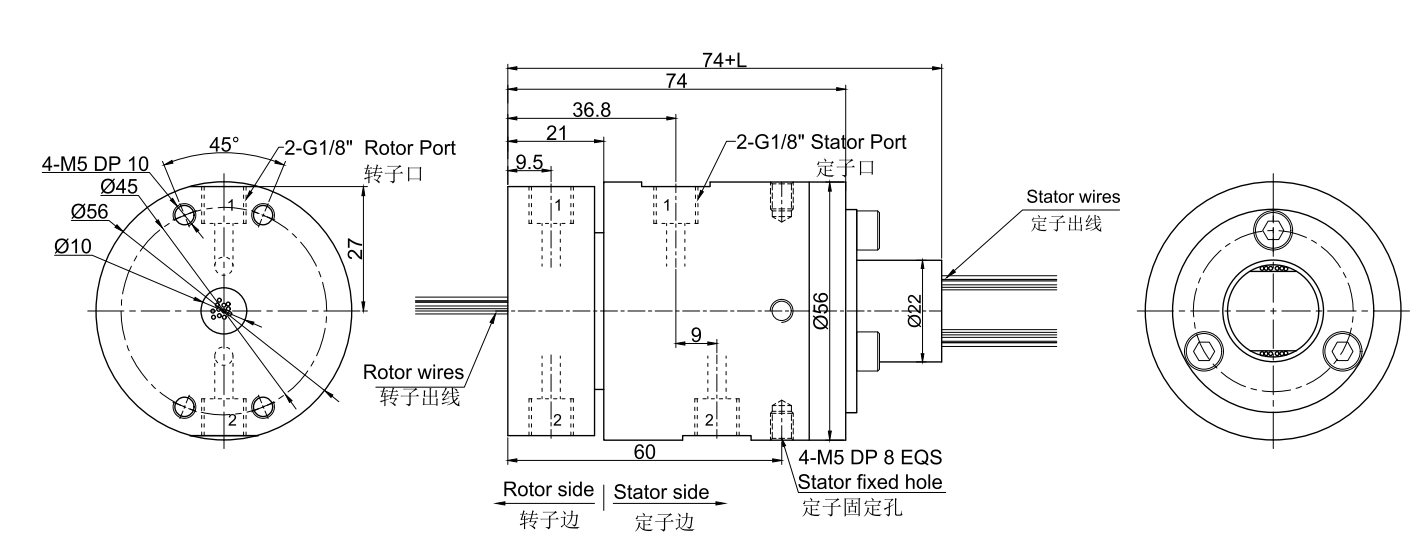 此款氣動(dòng)旋轉(zhuǎn)接頭是一款扭力小,性價(jià)比超高的旋轉(zhuǎn)接頭(也叫氣滑環(huán)或者氣電), 速度最大可達(dá)600RPM, 可單獨(dú)傳輸壓縮空氣,真空負(fù)壓的同時(shí),也同時(shí)能夠傳輸電源信號(hào),主要應(yīng)用于360度連續(xù)旋轉(zhuǎn)且需要保證氣壓,真空,電源,信號(hào)不能中斷的場(chǎng)合:如各種自動(dòng)化非標(biāo)設(shè)備,鋰電池設(shè)備,手機(jī)測(cè)試設(shè)備,手機(jī)高端裝備設(shè)備,各種激光設(shè)備,涂布機(jī) 、涂覆隔膜設(shè)備 、軟包電池用包裝膜設(shè)備,邦定設(shè)備 、貼合設(shè)備,電子半導(dǎo)體工業(yè)自動(dòng)化設(shè)備;光電平板顯示(LCD/LCM/TP/OLED/PDP)工業(yè)自動(dòng)化設(shè)備、檢測(cè)設(shè)備、其他自動(dòng)化非標(biāo)專業(yè)設(shè)備等等。