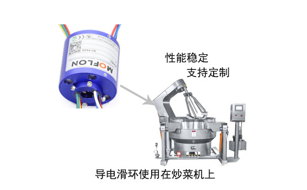 深圳市默孚龍科技有限公司研發(fā)的一款導電滑環(huán)能完美解決自動炒菜機在加熱系統(tǒng)、翻炒系統(tǒng)、顯示系統(tǒng)三個系統(tǒng)之間的繞線問題,能完成控制信號的傳遞、功率的傳輸、溫度等數據的實時反饋。